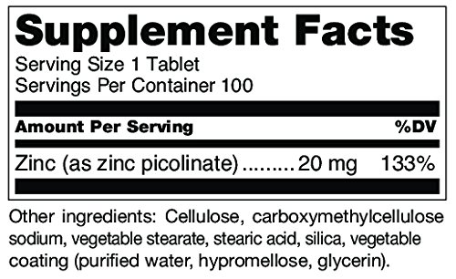 -. Binding : Health and Beauty -. Brand : Douglas Labs -. EAN : 0745287030554 -. Feature : Serving Size - 1 tablet -. Label : Health Yourself -. LegalDisclaimer : *These statements have not been evaluated by the Food & Drug Administration. These products are not intended to diagnose, treat, cure or prevent any disease. The information contained herein is for informational purposes only and does not establish a doctor-patient relationship. Please be sure to consult your physician before taking this or any other product. Consult your physician for any health problems. -. Manufacturer : Health Yourself -. MPN : ZNP -. PackageQuantity : 100 -. PartNumber : ZNP -. ProductGroup : Health and Beauty -. ProductTypeName : HEALTH_PERSONAL_CARE -. Publisher : Health Yourself -. Size : 100 Tablets -. Studio : Health Yourself -. Title : Douglas Labs - Zinc Picolinate, 20 mg, 100 tablets -. UPC : 745287030554