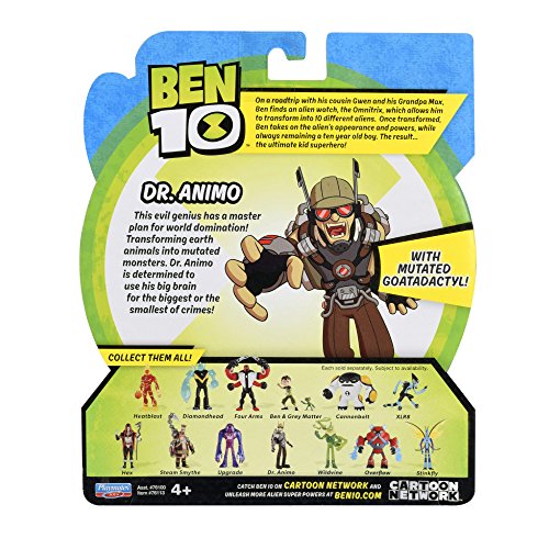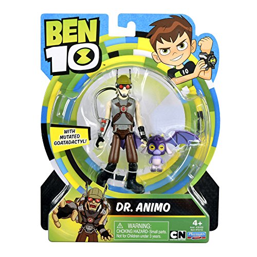On a road trip with his cousin Gwen and his Grandpa Max, Ben finds an alien watch, the Omnitrix, which allows him to transform into 10 different aliens. Once transformed, Ben takes on the alien's appearance and powers, while always remaining a ten year old boy. The result.the ultimate kid superhero! Ranging in height from 4" to 5" tall, each figure in the assortment is highly detailed and articulated. Most figures also comes equipped with themed accessories for added play! This pack includes Dr. Animo & his mutated monster "Goatadactyl". This evil genius has a master plan for world domination! Transforming earth animals into mutated monsters, Dr. Animo is determined to use his big brain for even the smallest of crimes! BEN 10, CARTOON NETWORK, the logos, and all related characters and elements are trademarks of and 2017 Cartoon Network.