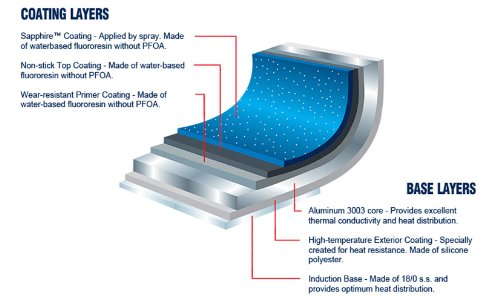 Each FlavorStone pan comes coated with scratch resistance PFOA-Free Sapphire non-stick