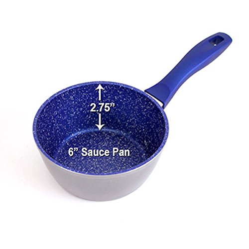 FlavorStone 1 Quart Sauce Pan has deep 2.7" walls that help keep liquids and ingredients inside the 6.5" Sapphire non-stick interior.