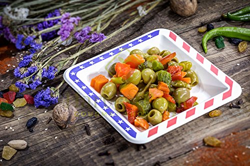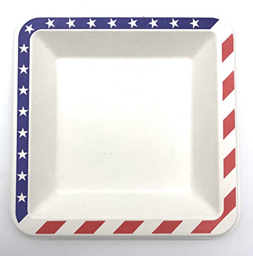 - BE PATRIOTIC AND ECO-FRIENDLY; Make a statement with your party guests on your environmental consciousness and love of country as a patriot with the U.S.A. Flag inspired All American Red White and Blue Star-Spangled patterns, these plates can be decomposed within a matter of months in a certified facility, leaving no footprints behind. Perfect Party Supplies for Memorial Day, Labor Day, 4th of July, Veteran's Day, President’s Day or any special occasion! Completely tree free and plastic free.