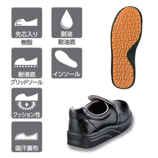 すべりにくく油に強いスニーカータイプ。クッション性に優れているため疲れにくく、先芯入りで落下物からつま先部分を保護します。