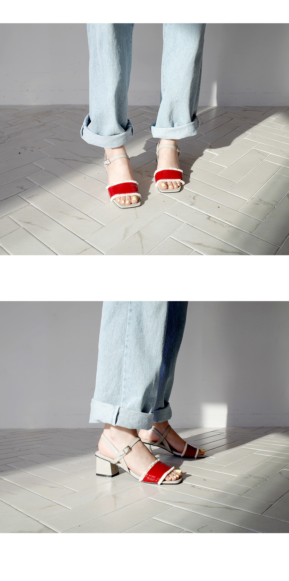 컬러배색이 돋보이는 샌들입니다.