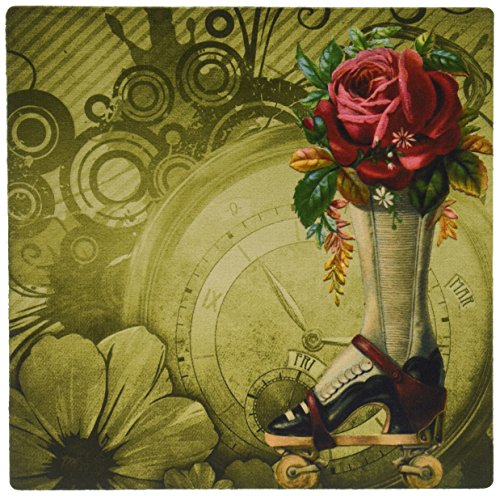 3dRose LLC 8 x 8 x 0.25 Inches Mouse Pad, Vintage Victorian Steampunk Roller Skate Boot with Red Rose Clock Background (mp_102680_1)