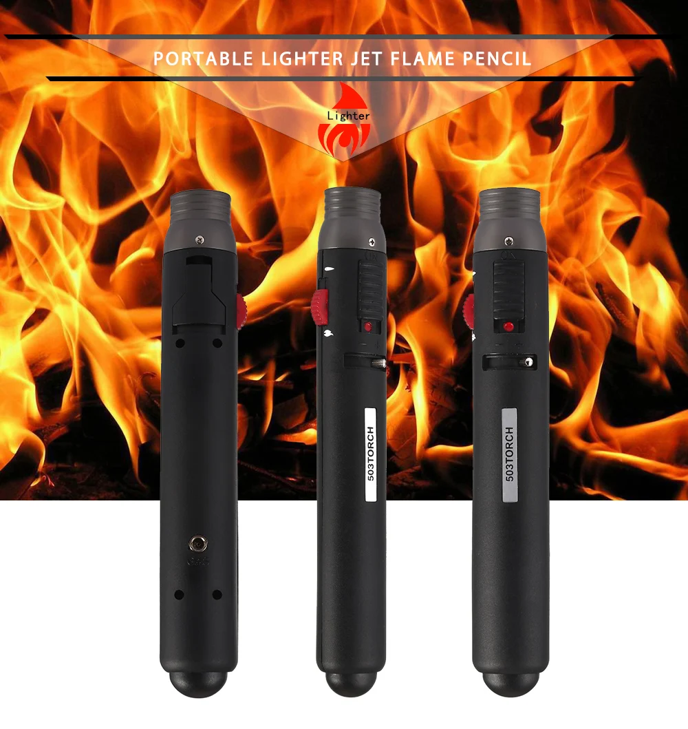 Adjustable Multifunctional Outdoor Stove Lighter Flame Pencil Zinc Alloy Butane Fuel Gas Torch For Camping Hiking 2018 New
