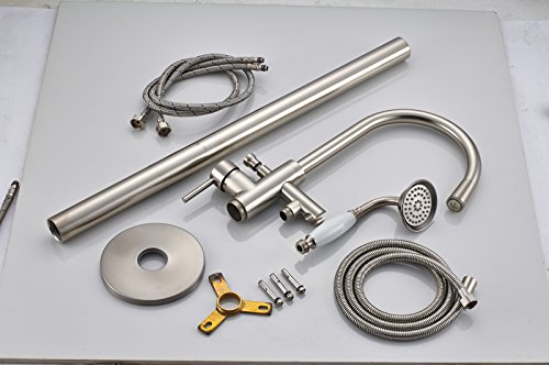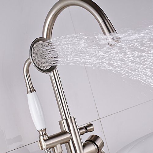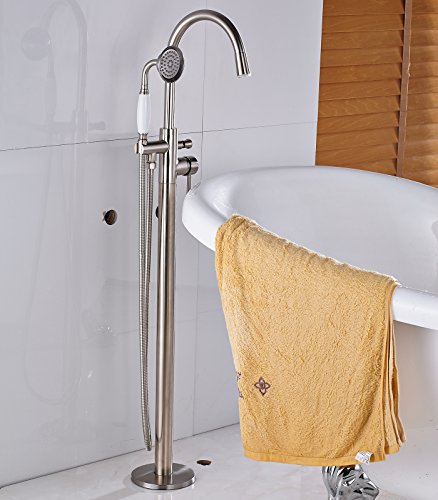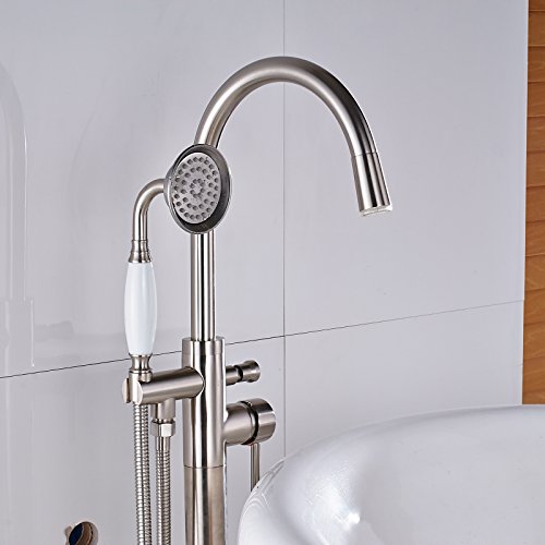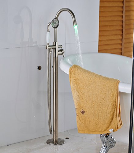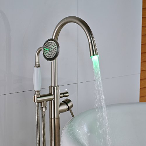 Votamuta Stainless Steel Bathroom Tub Filler Floor Mounted Bathtub Shower Mixer Tap LED Spout with Handheld Sprayer Head,Brushed Nickel
