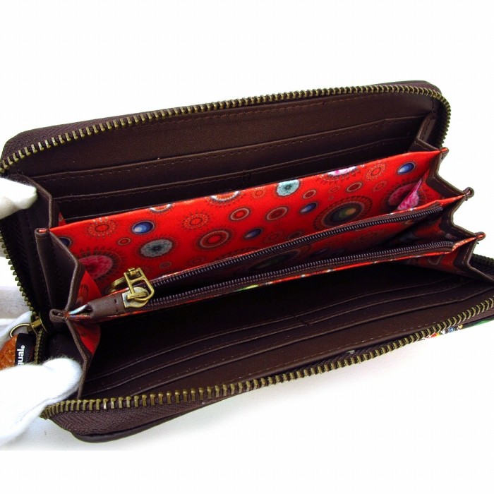 デシグアル Desigual 財布 長財布 ラウンドファスナー 刺繍サイズ(約)縦9cm×横18cm×厚さ3cm  ※多少の誤差はご容赦ください■素材:合成皮革■仕様:ラウンドファスナー開閉 小銭入れ×1、カードスロット×8、オープンポケット×2、札入れ×1■原産国:中国