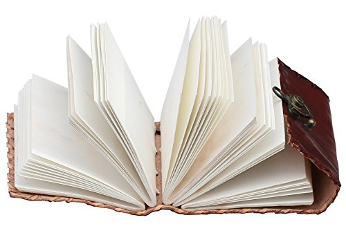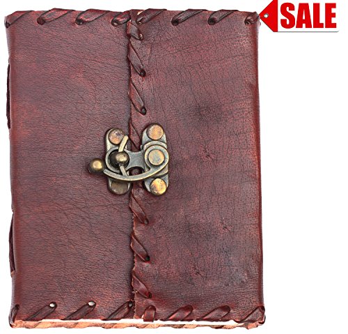 Retro, Antique Look: Leather cord cut from the same leather woven into the border and old-world metal closure clasp. Expect the leather cover to look worn and distressed, and some coloring on the first and last page, done purposely for that age-old, antique look