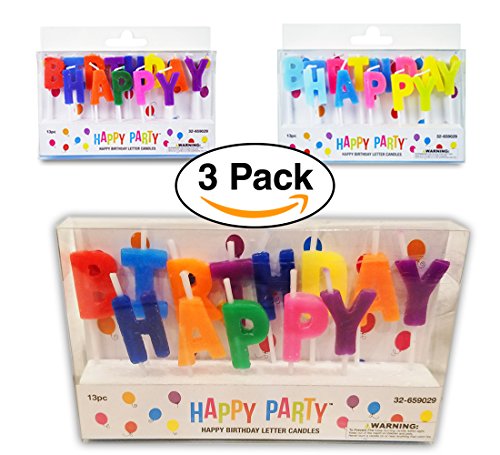 3 Pack - Happy Birthday Cake Candles Cake Topper pick Letter cake Candles, Assorted Colors
