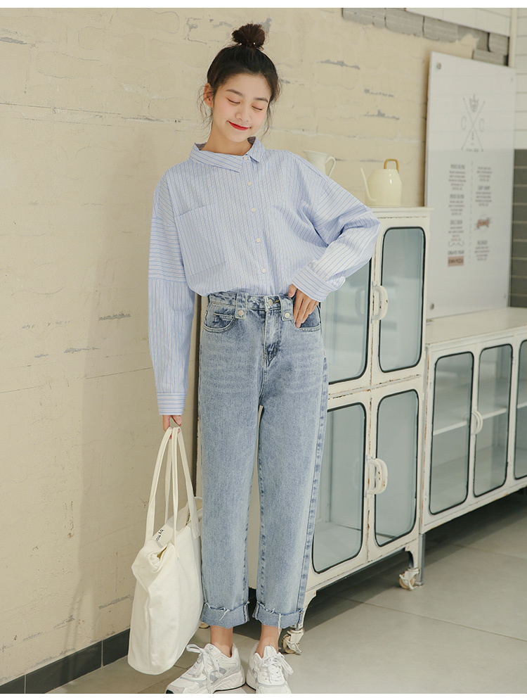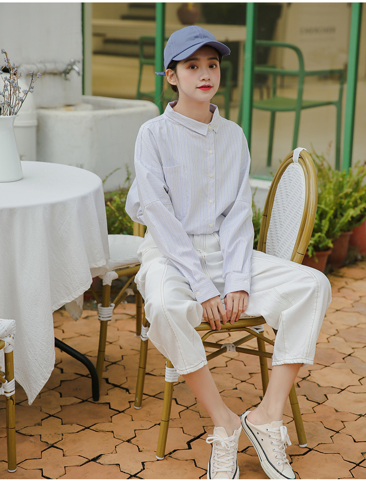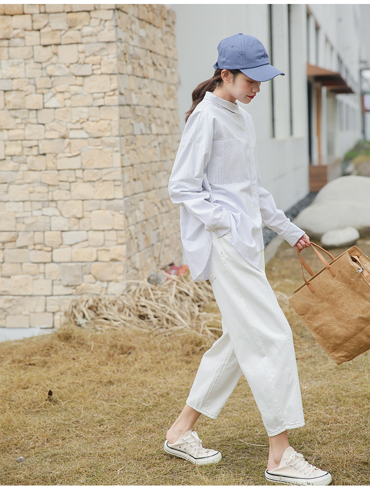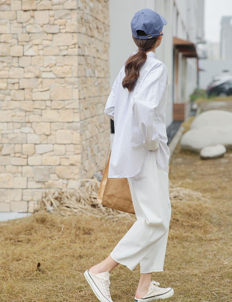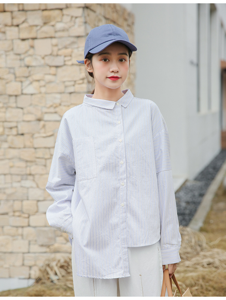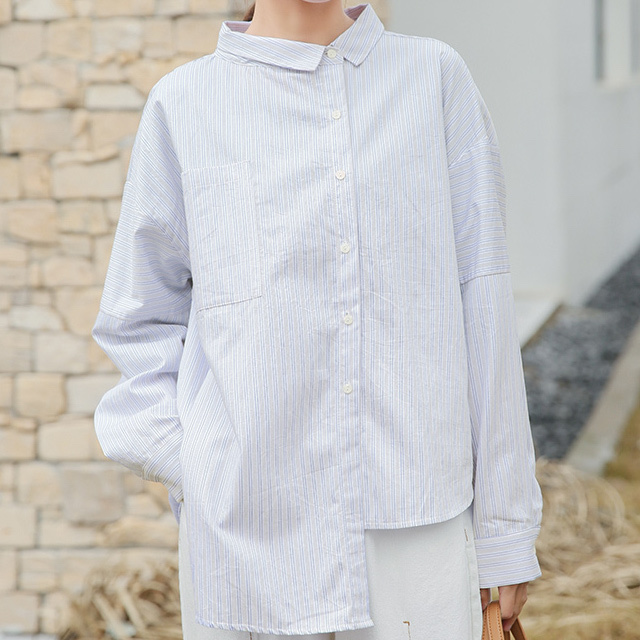 春らしく爽やかな雰囲気の長袖ストライプ柄シャツです。