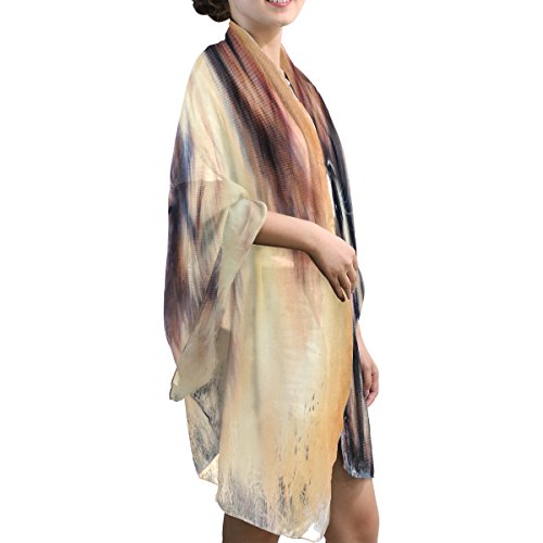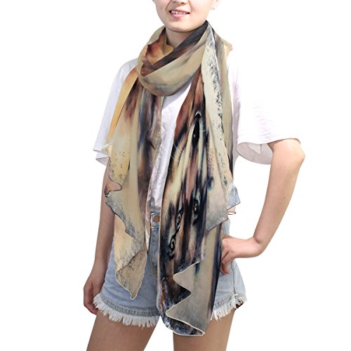 (ALAZA)/Accessories/Cold Weather Accessories/DIRECT FROM USA/ALAZA Fashion Oil Painting Wolf Chiffon Silk Long Scarf Shawl Wrap