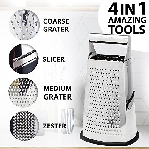 - ★ PERFECT CHOICE FOR EVERY KITCHEN - Give a beginner or pro cook this vegetable grater shredder that comes in a STYLISH PACKAGE, and they’ll be thanking you for years! Top-quality stainless steel, ergonomic design & durability come together in this sharp, handheld box grater!
