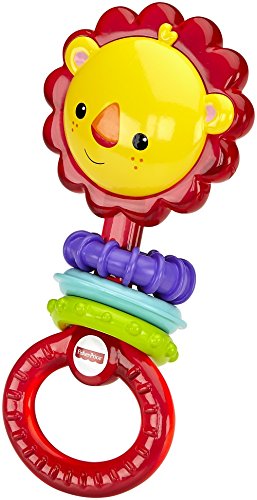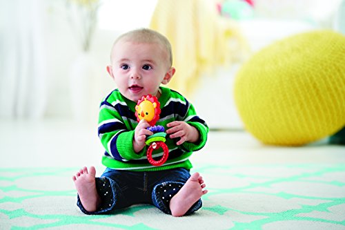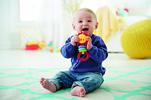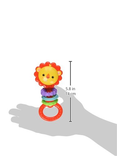 -. Feature : Classic dumbbell rattle design with a fresh, new twist / Clacker beads make fun click-clack sounds when baby shakes rattle / Easy for little hands to grasp, hold and shake / Helps give fine motor skills a ferociously fun workout / Great for entertaining baby on-the-go
