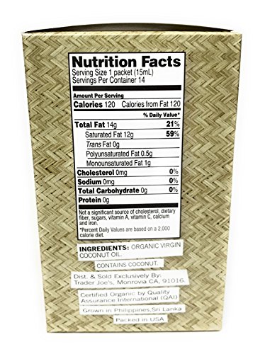 -. Title : Trader Joe Organic Virgin Coconut Oil Packets (Pack of 14 Packets), Net Wt. 7.1 fl oz