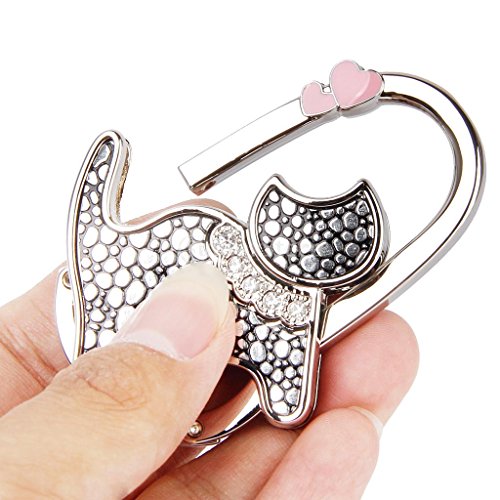Product detail: Brand name:Xiaolanwelc Model Number:Bag Hanger Hook Feature:Stocked,Eco-Friendly Use:Handbag Type:Hooks Rails Material:Metal Color: Black Silver dots Material: Zinc alloy Rhinestones Description: Cat shape . And its neck surrounded by dazzling rhinestones for added bling Keep your handbag off the floor and safe at restaurant, office, or anywhere Unfold and hook on the edge of a table or bench to protect your bag The hook stores neatly and stays together with a black rubber in the base Non-slip back to secure your handbag without falling Will never fade,never getting rusty Can be used for less than 4.5 cm / 1.8 " thickness of the desk Size when Folded ( L x W x H ) : Approx. 7 x 5 x 1.2 cm / 2.8 x 2 x 0.5 " Length When Extended: Approx. 10cm / 4 ". Package included: 1x Handbag Hanger 0