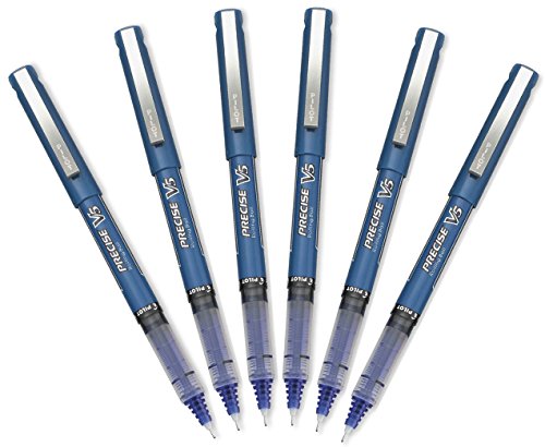 Pilot Precise V5 Stick Rolling Ball Pens, Extra Fine Point, Blue Ink, Pack Of 6