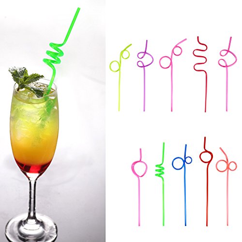 10Pcs Colorful Drinking Straws Crazy Curly Loop Plastic Straw For Birthday Party Bar