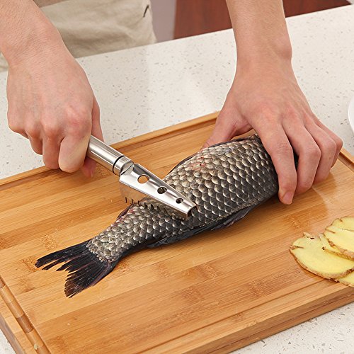 >>The ergonomic handle provides you with firm grip so you can get rid of those fish scales safely.