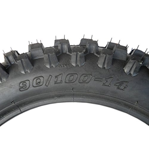 -. Feature : Motocross / off road tire and inner tube kit for dirt pit bikes / Aggressive knob design for maximum traction on soft and intermediate surfaces / Stiffer bead and sidewall construction provide stability and better cornering control / Tire Size: 90/100-14 / You will get: 1x Tire & 1x Tube
