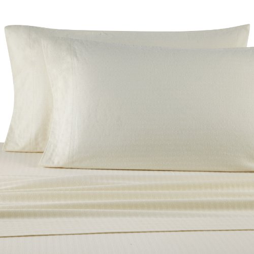 Casual Living Heavyweight Damask Stripe Flannel Sheet Set, Queen, Ivory