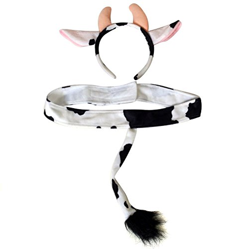 -. Feature : Soft plush cow headband ears and tail costume set / Soft touch waist fits up to 24" / Tail measures approx. 9" long / Ideal for Halloween, dressup, plays, school