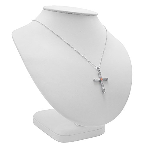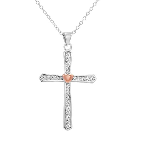 -. Title : Cubic Zirconia Cross Pendant-Necklace with Rose Gold Plated Heart in Sterling Silver