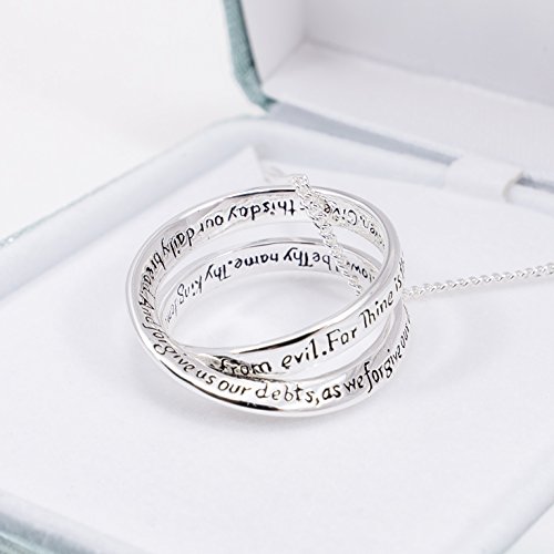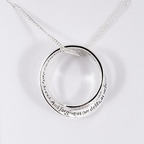 -. Title : The Lord's Prayer Double Mobius Ring Silver Plated Pendant Necklace - 18 inch Chain