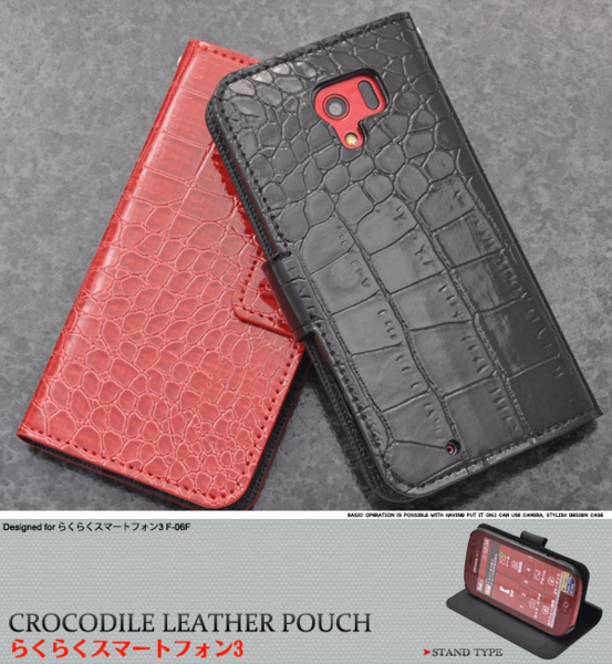 らくらくスマートフォン3 F-06F用スタンドケースポーチ。