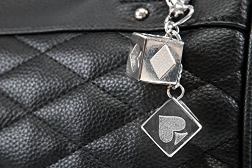 Binding : Apparel Product Description Guess who's back!! One of our all time favorite totes is here for an encore in all new color combos. The Mini Atomic Tote is adorned with our detachable custom dice baubles that can also be used as a keychain. Features our custom Lux de Ville black on black leopard lining with inside pockets, adjustable cross body strap, and matching dust bag. Dimensions: 12" long x 8" high x 6" wide Strap drop: 8" 0