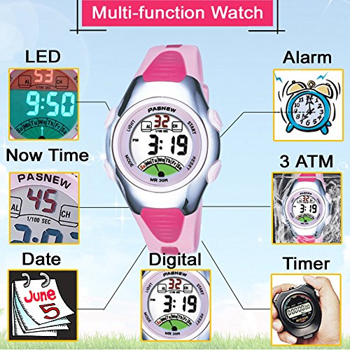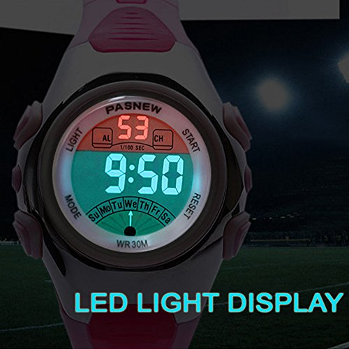 Viliysun Child Watch 30M Waterproof Sport LED Alarm Stopwatch Digital Kid Wristwatch for Boy Girl Pink