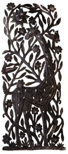 Le Primitif Galleries Haitian Recycled Steel Oil Drum Outdoor Decor, Giraffe