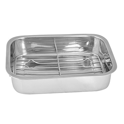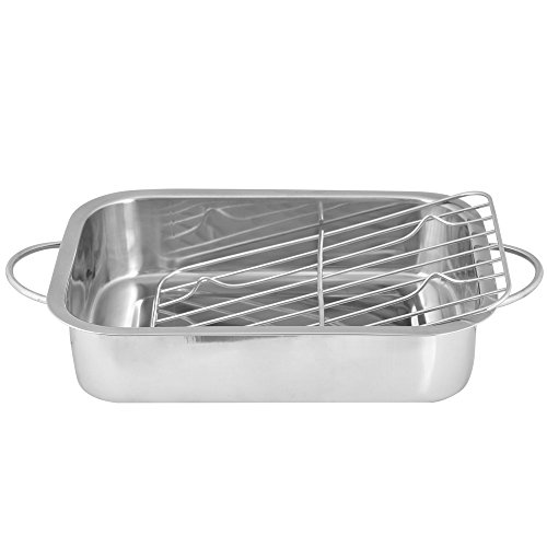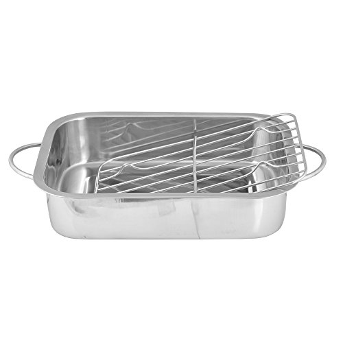 Product Description Stainless steel roasting pan is ideal for healthier cooking. It also features folding side handles for safe handling and easy storage. Suitable for use in all ovens, this high quality stainless steel pan is ideal for roasting and making gravy. 0
