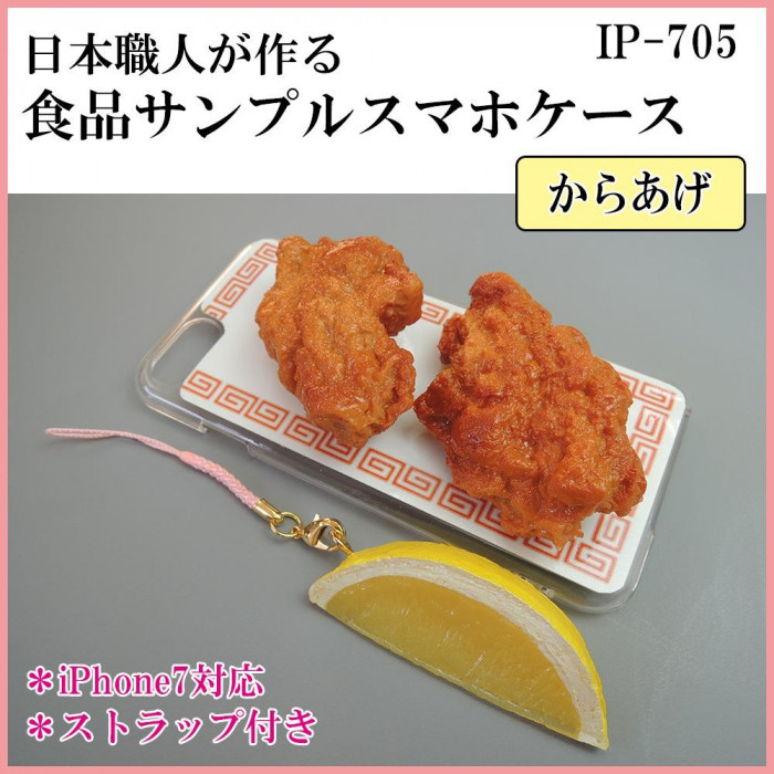 おいしそうなからあげをiPhone7ケースに。ミニレモンのストラップまで付いています☆見ているだけでお腹が空いてしまうほどのクオリティ!食品サンプル好きにはたまらない商品です。 |