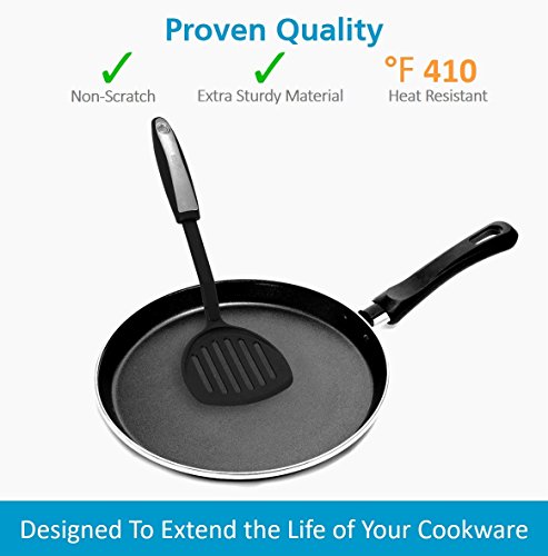- STURDY AND HEAT RESISTANT: Utensils built to last longer. Made from heat resistant nylon up to 410F and premium stainless steel for maximum durability. Dishwasher safe, BPA-free and FDA approved utensils, ensure top quality and performance.