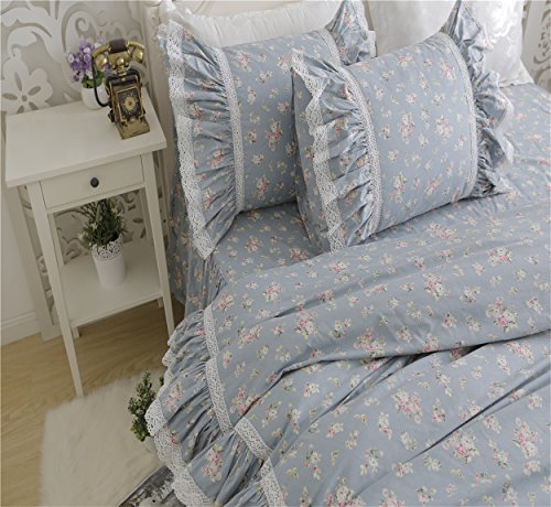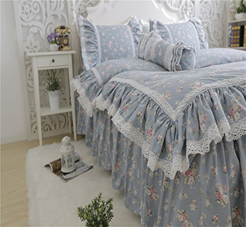 TWIN SIZE (5ft Bed) 1-piece Duvet Cover 59 by 79 inches (150 by 200cm) 1-piece Bed Skirt 47 by 79 inches (120 by 200cm) 2-piece Pillow Cases 19 by 30 inches (48 by 74cm) FULL SIZE (5ft Bed) 1-piece Duvet Cover 79 by 91 inches (200 by 230cm) 1-piece Bed Skirt 59 by 79 inches (150 by 200cm) 2-piece Pillow Cases 19 by 30 inches (48 by 74cm) QUEEN SIZE (6ft Bed) 1-piece Duvet Cover 79 by 91 inches (200 by 230cm) 1-piece Bed Skirt 71 by 79 inches (180 by 200cm) 2-piece Pillow Cases 19 by 30 inches (48 by 74cm) LARGE QUEEN SIZE (6ft Bed) 1-piece Duvet Cover 87 by 94 inches (220 by 240cm) 1-piece Bed Skirt 71 by 79 inches (180 by 200cm) 2-piece Pillow Cases 19 by 30 inches (48 by 74cm) Features 100% Washed Cotton,a slight wrinkle,like old style.Feel like super soft,and comfortable. Solid color with lace ruffle design,sweet and cute style. Reactive Dying,Non-Fading,Non-Pilling, Non-Wrinkle. Fabric Density:133x72,Fabric Count:40x40 Floral ruffles korean bedding set is Ideal choice for your princess dream Cares Machine Wash in Cold, Dry on Low. Our Customer Satisfaction Money-Back Guarantee If you are not satisfied with the Lotus Karen Bedding Sets,just return it within 30 days for a full refund. No questions asked,no hassle. 0