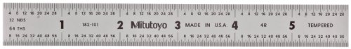 Mitutoyo 182-101, Steel Rule, 6" (4R), (1/8, 1/16, 1/32, 1/64"), 3/64" Thick X 3/4" Wide, Satin Chrome Finish Tempered Stainless Steel