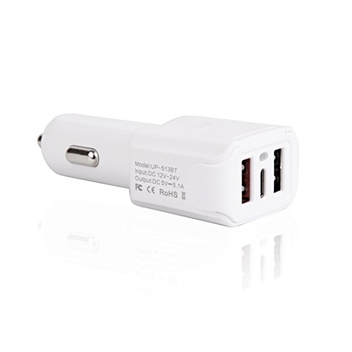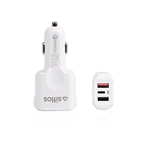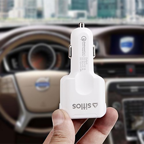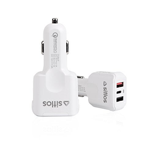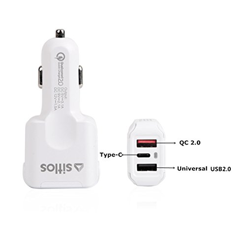 Fast Car Charger ,Sitlos 5.1A/26W Quick Charge 2.0 Adapter with 3 Ports ( Universal USB + QC 2.0 + Type C ) for iPhone ( 5 / 5s / 6 / 6s / 7 / Plus ), Samsung, Android Phones, Tablets and More (White)