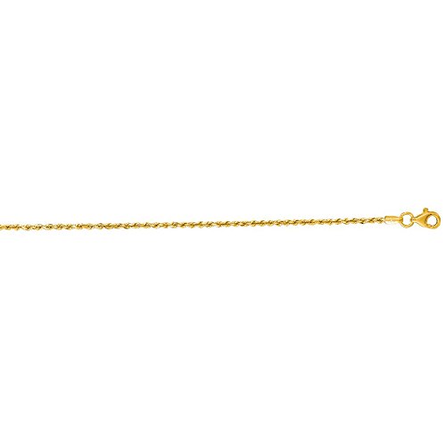 -. Title : 14K Solid Yellow Gold Diamond Cut Rope Anklet 1.5mm thick 10 Inches