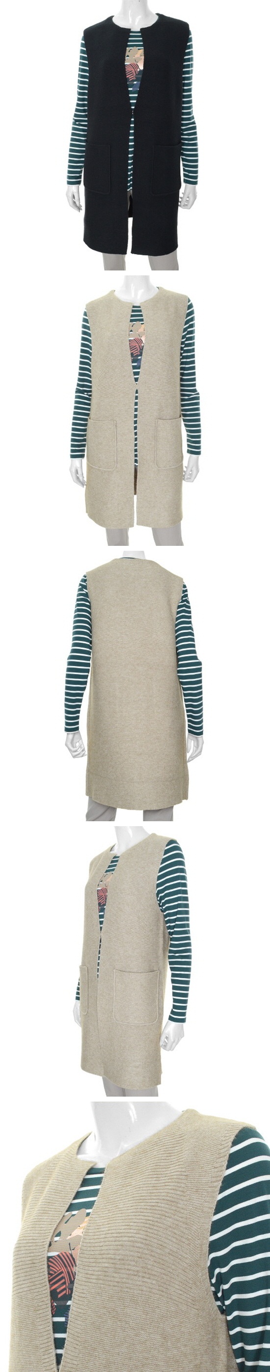 -톡톡한 R/N 소재의 오픈 베스트로 체형커버가 용이하며 간절기 아우터로 활용하기에 좋은 아이템.