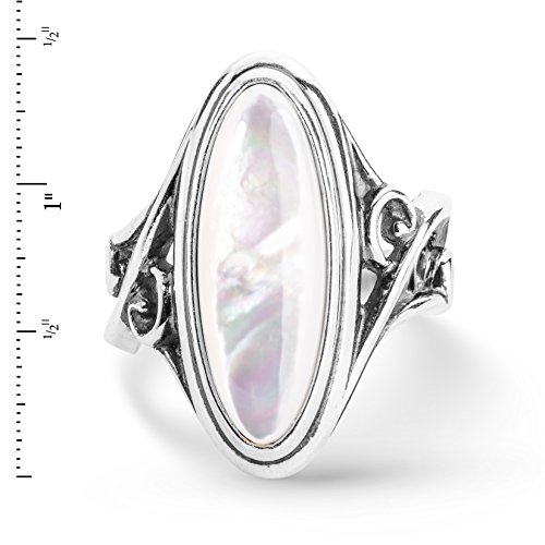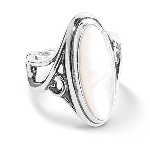 -. Binding : Jewelry -. Brand : Carolyn Pollack -. Department : womens -. Feature : Sterling silver elongated ring / White mother of pearl gemstone / Ring measures 1" long / Designed and crafted in America with gemstones from around the world / An elongated oval white mother of pearl flatters the hand with this bold silver in a comfortable design. -. Label : Relios -. Manufacturer : Relios -. Model : cp7-3817-082-xx -. MPN : cp7-3817-082-xx -. PartNumber : cp7-3817-082-xx -. ProductGroup : Jewelry -. ProductTypeName : FASHIONRING -. Publisher : Relios -. Studio : Relios -. Title : Carolyn Pollack Sterling Silver & White Mother of Pearl Elongated Ring