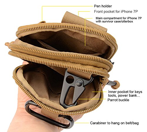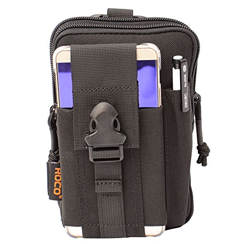Compact Tactical Molle EDC Pouch Utility Gadget Belt Waist Bag with Cell Phone Holster Holder for Iphone 6 Plus, 1000D Nylon (Black)