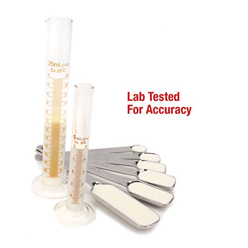 - BAKE WONDERFUL DESSERTS Baking great mouth-watering pies, cakes and cookies requires various measurements and these measuring spoons have the variety you demand with 6 (six) of the most common spoon sizes in standard US and metric measurements, lab-tested for accuracy: 1 tablespoon (15 ml), 1 teaspoon (5 ml), 3/4 tsp (3.75 ml), 1/2 tsp (2.5 ml), 1/4 tsp (1.25 ml) and 1/8 tsp (0.6 ml). Plus, our thinner, narrow and elongated spoons fit easily into narrow spice jars and tins.