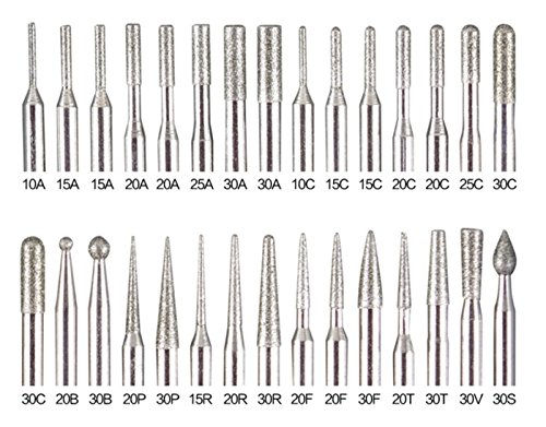Eastern Fashional Life 30Pcs Assorted Shapes Portable Mini Rotary Diamond Drill Bits