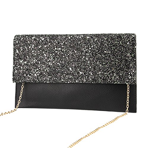 Naimo Women Envelope Clutch with Detachable Chain Strap Magnet Hook Ladies Sequin Evening Purse