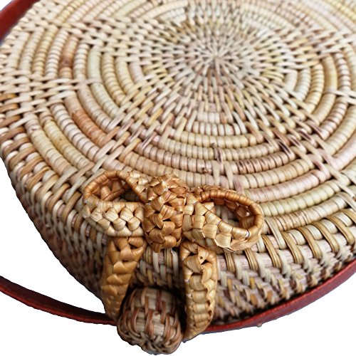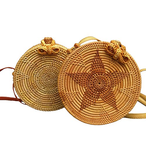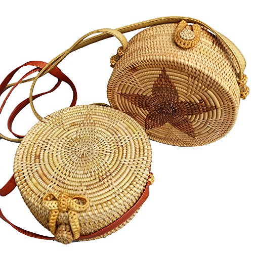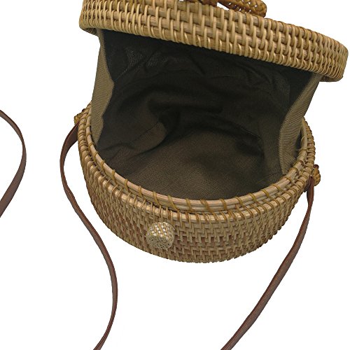 amololo Flower Woven Round Rattan Bag Straw Crossbody Bag with Lining Inside(7.8")