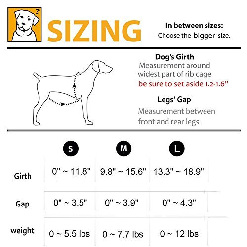 -. Feature : Material: Canvas. Durable and machine washable. / Able to keep the head, tail and legs outside, making your pets enjoy sunshine and fresh air. / Backpack design can reduce your shoulder pressure and let your hands free. / With adjustable strap with buckle, safe and firm. Two ways to carry at front & back. / Please Measure the Widest Place of Front Chest, Be Sure to Set Aside 1.2-1.6 inch. Size S: for dogs weighting up to 5.5 pounds, with chest less than 30cm/11.8 Inch; Size M: for dogs weighting up to 7.7 pounds, with chest less than 25-40cm/9.8-15.7 Inch; Size L: for dogs weighting up to 12 pounds, with chest less than 35-48cm/13.7-18.9 Inch.