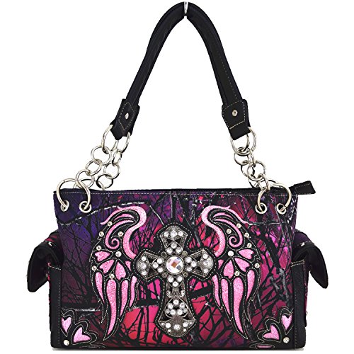 Western Cowgirl Classic Shoulder Bag With Wallet Set [Interior: Top Zipper Closure, Interior Middle Zipper, Divider Pocket with Multiple Interior Size Pockets and Flap Magnetic Closure. Exterior: Back Phone Slot with Zipper Concealed Carry Pocket