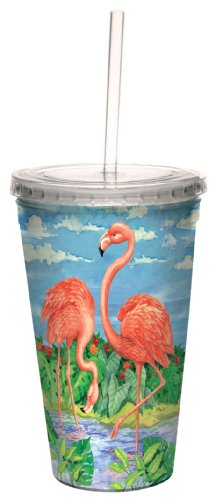 Tree-Free Greetings cc33395 Tropical Flamingos by Paul Brent Artful Traveler Double-Walled Cool Cup with Reusable Straw, 16-Ounce, Multicolored