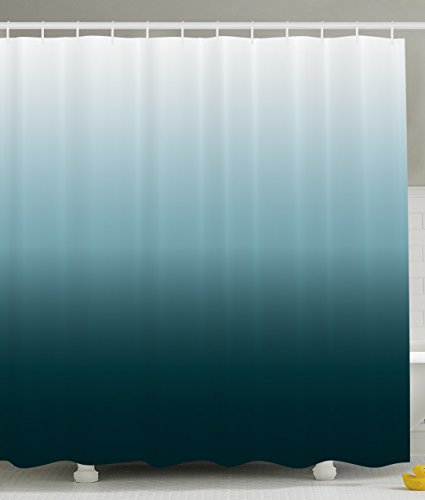 Ombre Shower Curtain Art Bathroom Decor by Ambesonne, 70 Inches Long Home Decorations, Polyester Fabric Shower Curtain Set with Hooks, Ombre Colorful Design, White Teal