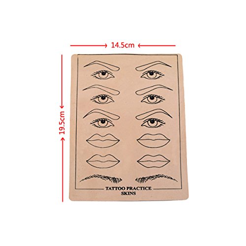 Use: Perfectly used on eyebrow or lips tattoo practice. The tattoo practice skin is flexible and has a similar feel as human skin. Suitable for tattoo beginners or experienced artists. And great for testing your progress during practice sessions. You can use it to practice different techniques, from outlining to shading. Contoured to form several different eyebrows, eyes and lips shapes. It is the best thing before practicing on a real person.